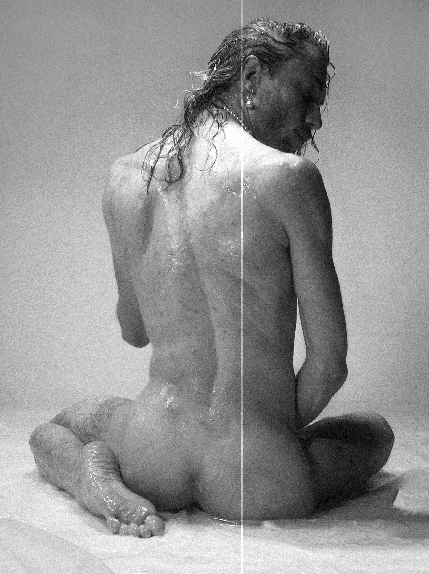 Thus, in one series, we embraced the raw, fluid essence of human form, showcasing wet, tactile skin textures and sensual performative body movements. Another series diverged towards a contrasting aesthetic, delving into the erotic allure of concrete, leather, and latex. Bodies entwined amidst steel spikes, the dusty floor beneath their skin, captured through the lens of a nocturnal voyeur, evoking a subtle yet intense mood. Or rediscovering the aesthetic of point-and-shoot, we drew inspiration from early 2000s porn and erotic film production, embracing the rawness, ostentatious vulgarity, and imperfections inherent in the imagery.